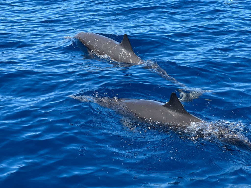Here: dolphins around the fishing boat off the coast of Costa Rica; Above: part of the Serpent Mound in Ohio